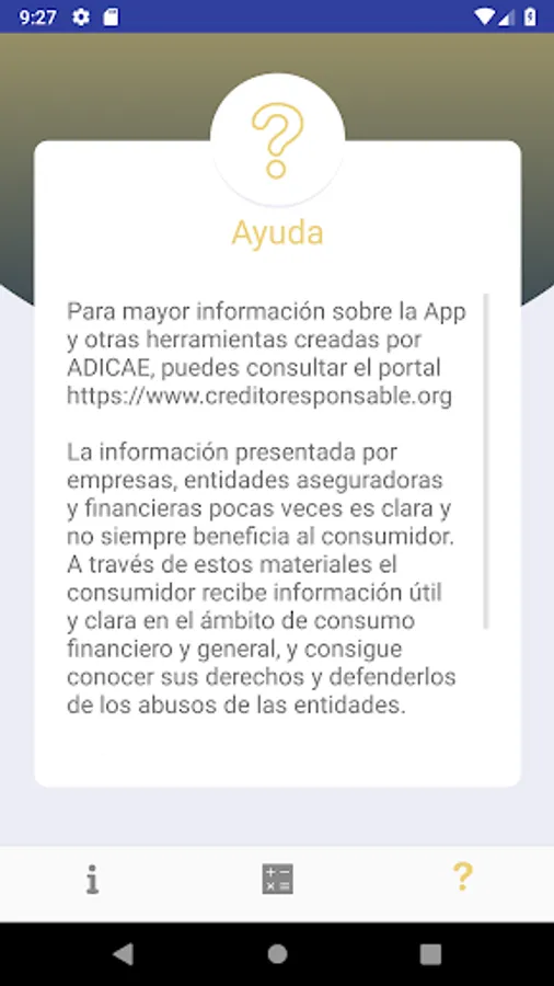 This is one of several tools designed by ADICAE and available thanks to technology, with the purpose of helping the consumer of financial services to make their decisions in the world of credits, insurance or savings in a simple and practical way.