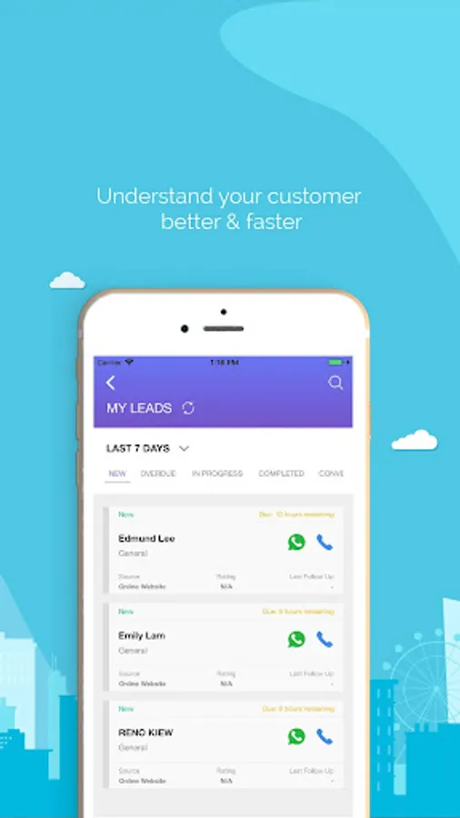A mobile app facilitates the initial stage of sales process for leads tracking to increase productivity and to build effective solid sales pipeline through the steps that could convert more leads into actual opportunities.