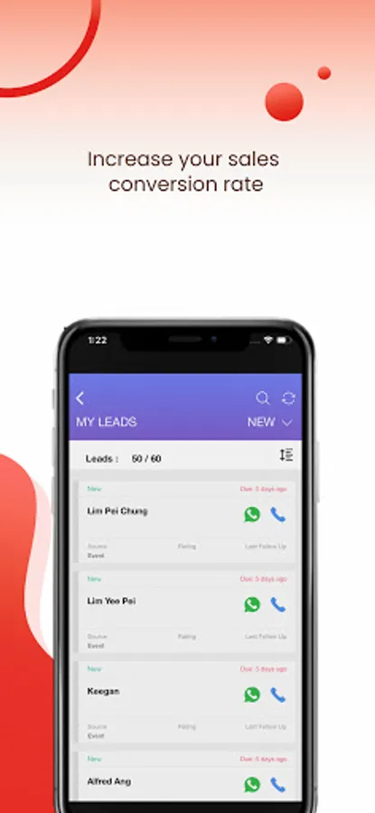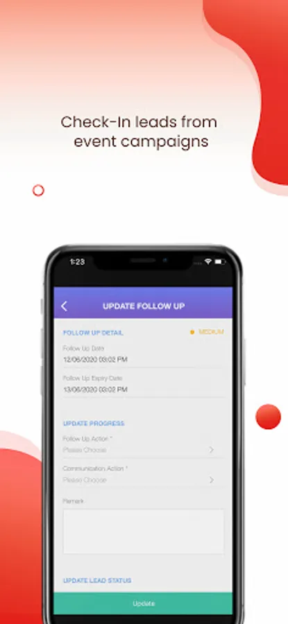 A mobile app facilitates the initial stage of sales process for leads tracking to increase productivity and to build effective solid sales pipeline through the steps that could convert more leads into actual opportunities.