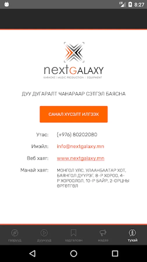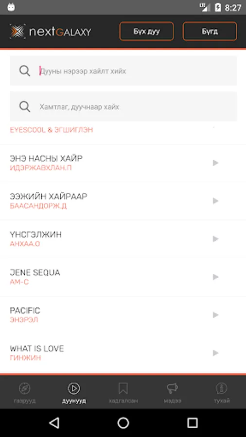 Энэхүү апп нь Next Galaxy Karaoke дууны сан юм.