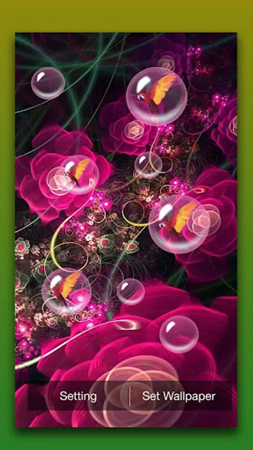 Fantasy Flowers Live Wallpaper based on High quality animation and very realistic bubble floating on background which is fully interactive
