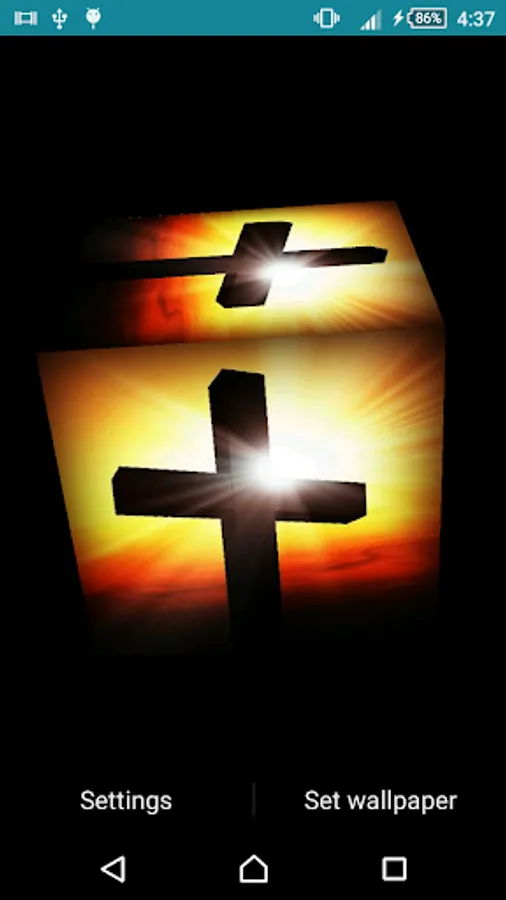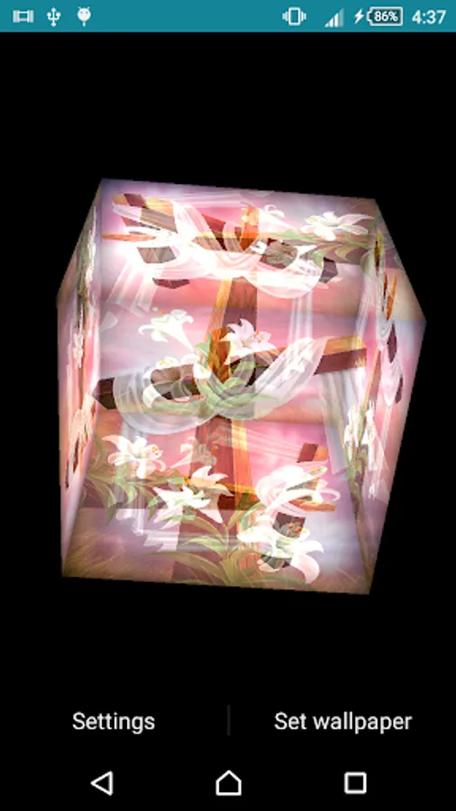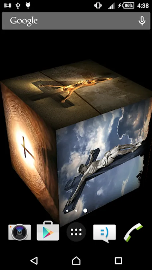 This 3D Holy Cross Live Wallpaper features a rotating 3D photo cube showing pictures from selected image.