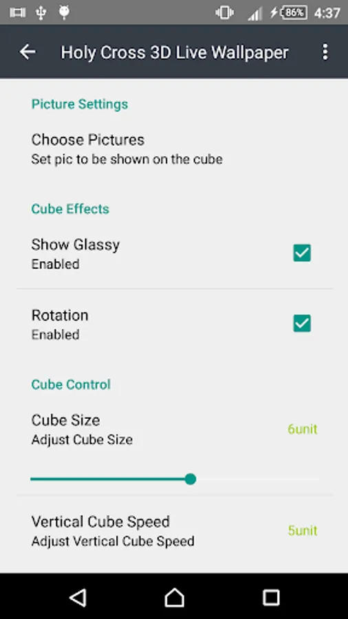 This 3D Holy Cross Live Wallpaper displays cubes of six images from selected image.