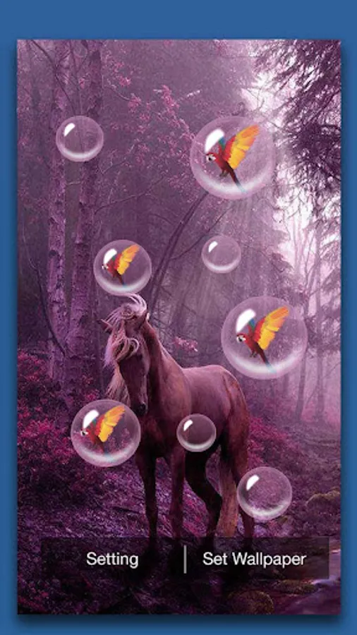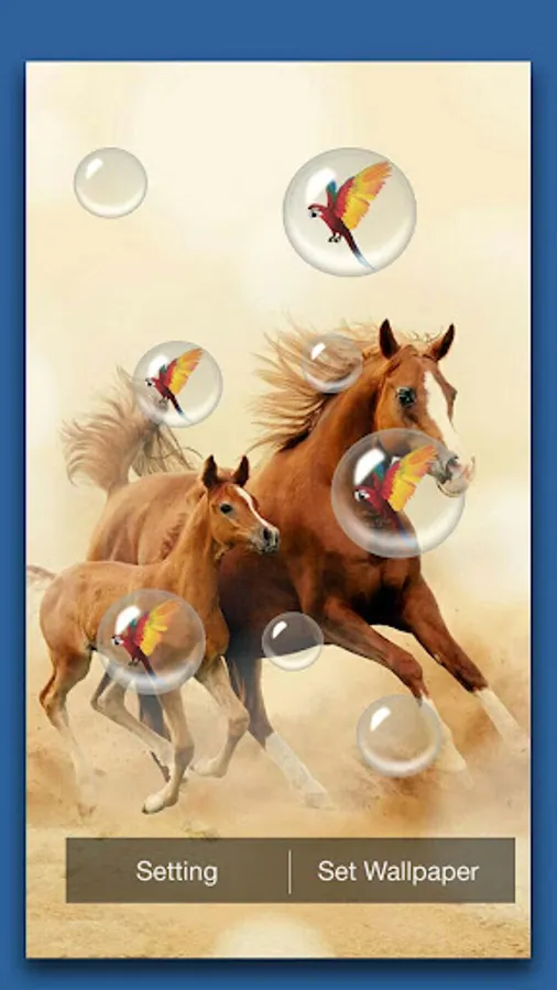 Horse Live Wallpaper based on High quality animation and very realistic bubble floating on background which is fully interactive