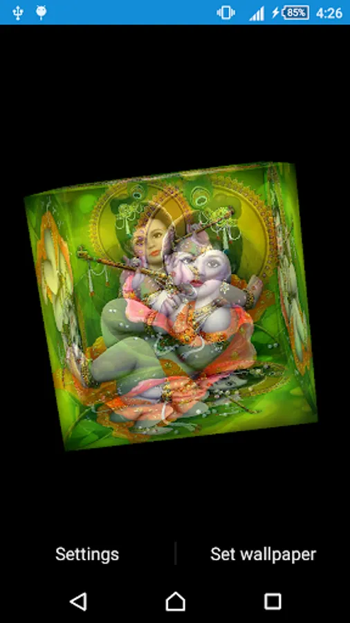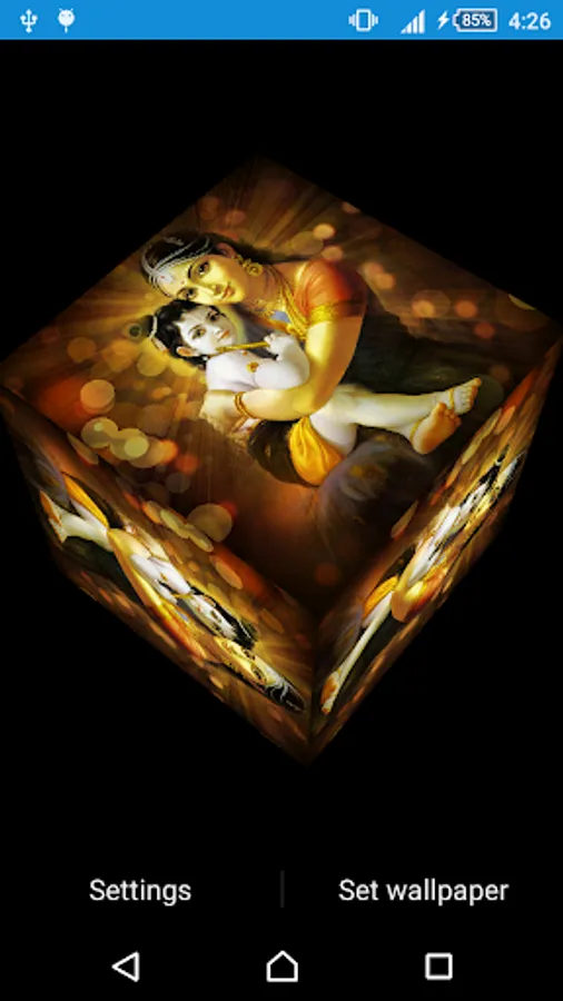 This Krishna Live Wallpaper features a rotating 3D photo cube showing pictures from selected image.