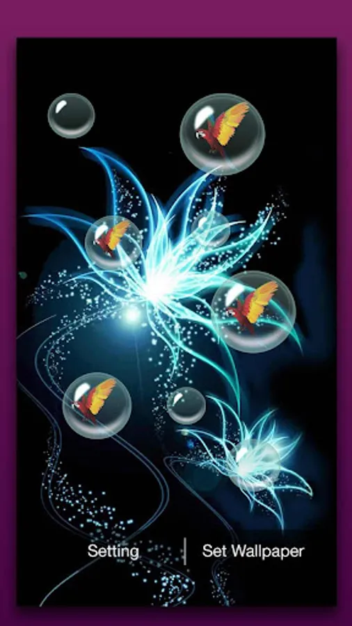 Neon Flowers Live Wallpaper based on High quality animation and very realistic bubble floating on background which is fully interactive