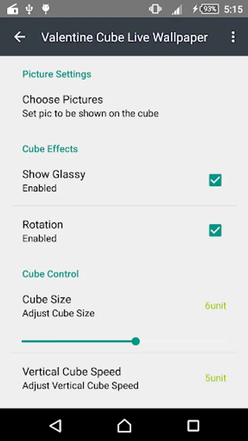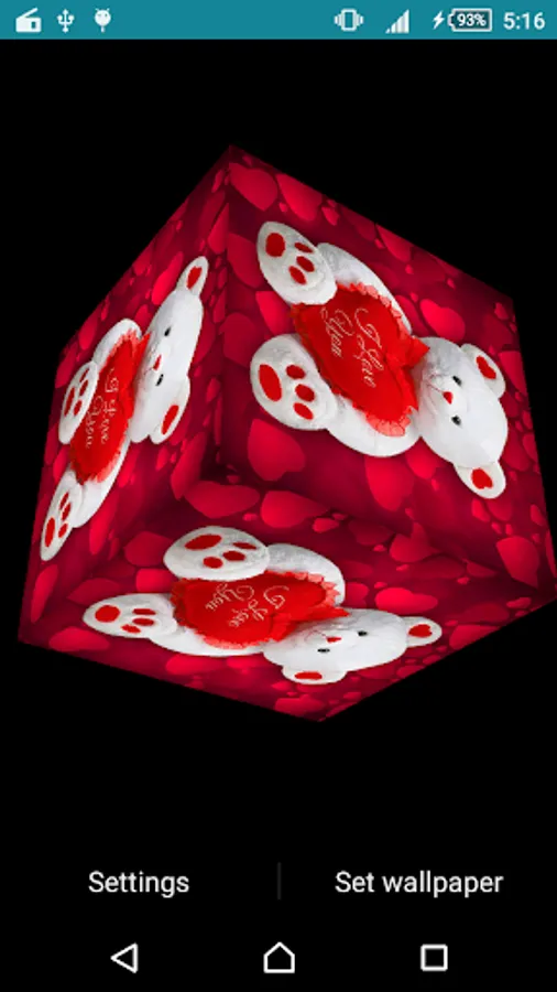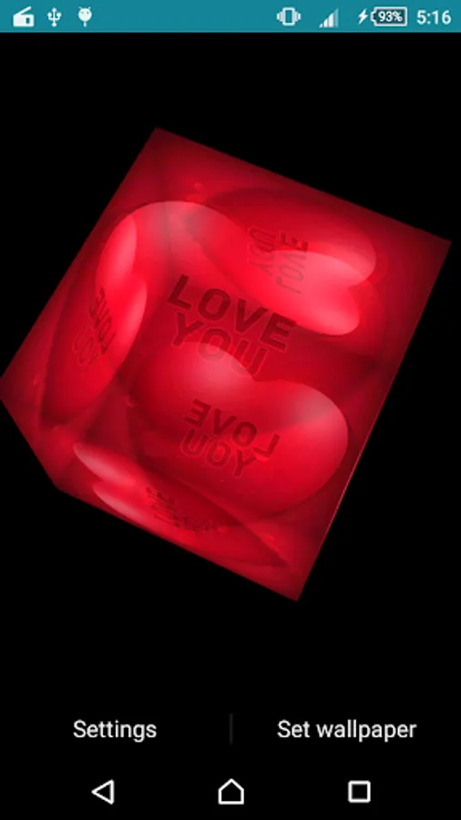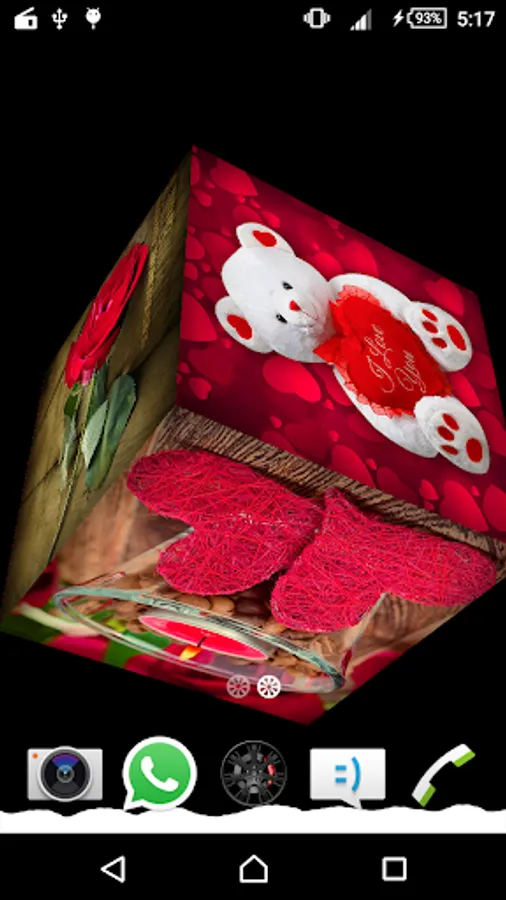This Valentine Cube Live Wallpaper features a rotating 3D photo cube showing pictures from selected image.