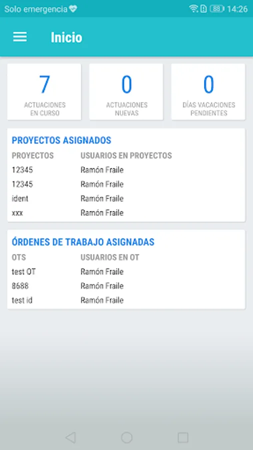 Platform for the management of projects, activities and breakdowns for personnel displaced in the field as well as for the hourly control and presence of workers.