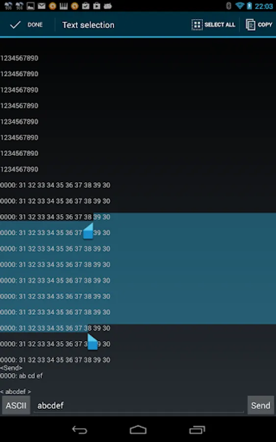 You can use ASCII & HEX commands