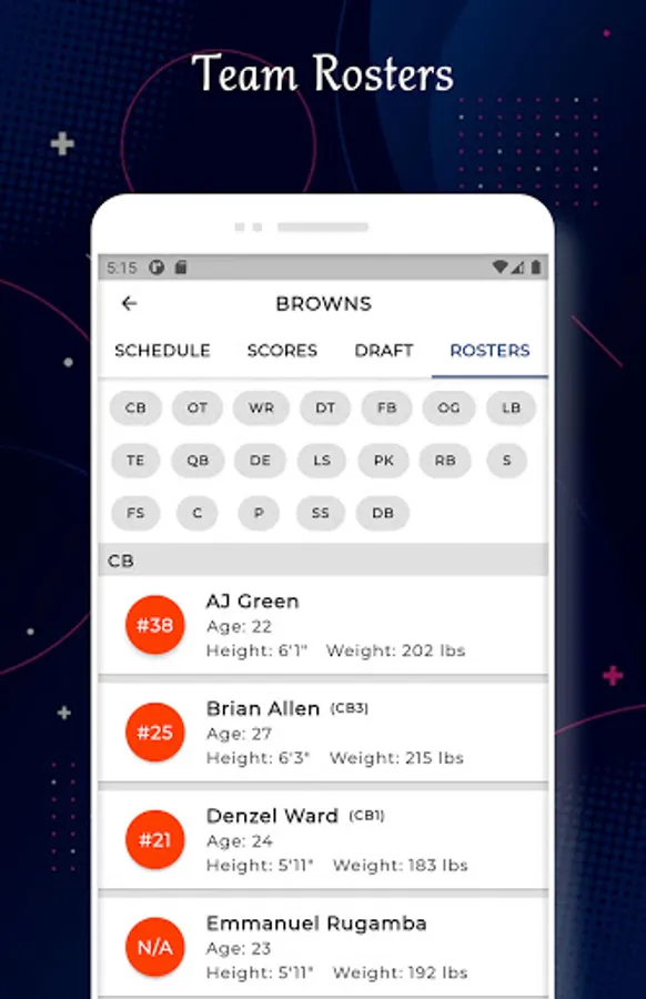 ✓ Team Roster with Offense, Defense, and Special team labels.