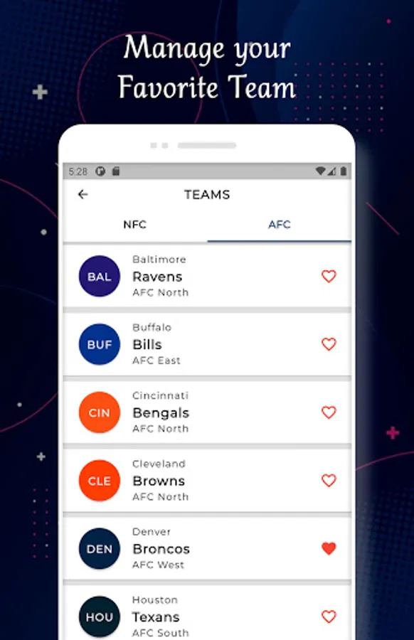 ✓ Mark team as Favorite Team to get all updates of the team you follow with a single click.