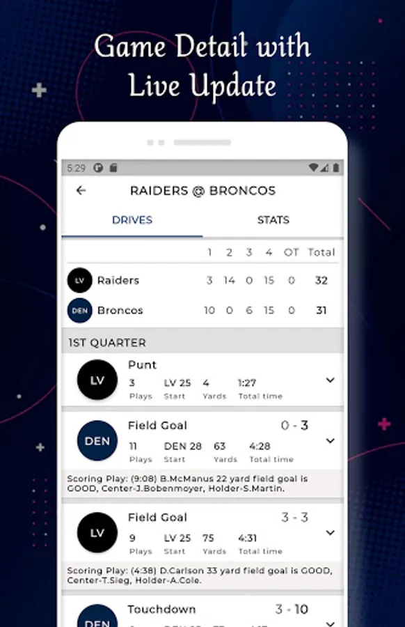 ✓ Fastest Realtime Live Score updates for Broncos and NFL.