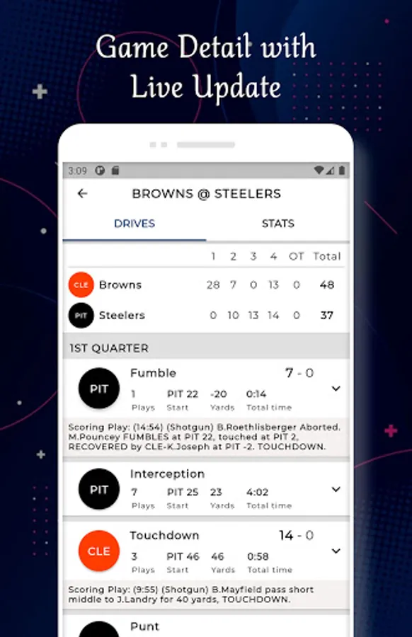 ✓ Fastest Realtime Live Score updates for Steelers and NFL.