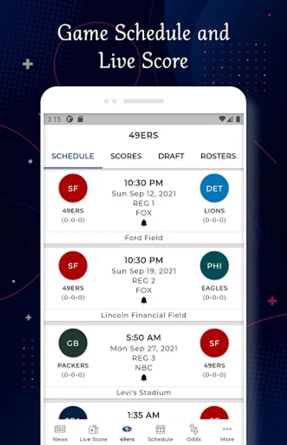 The best football app for San Francisco Fans! Want to check the scores and see when the 49ers are playing? Here You Can Find Complete 49ers Schedule & Live Game Updates!