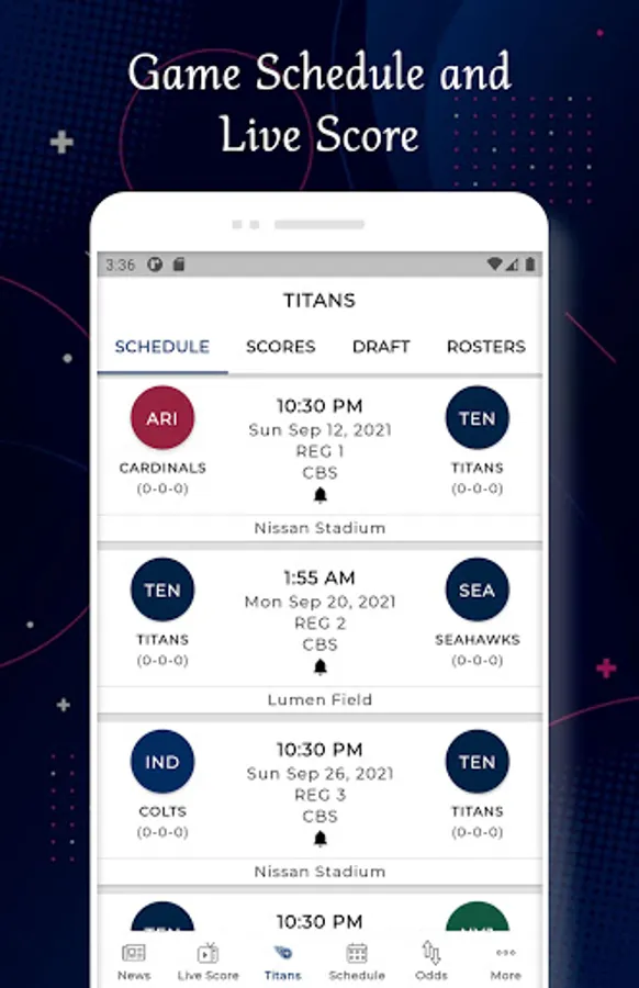 ✓ Fastest Realtime Live Score updates for Titans and NFL.