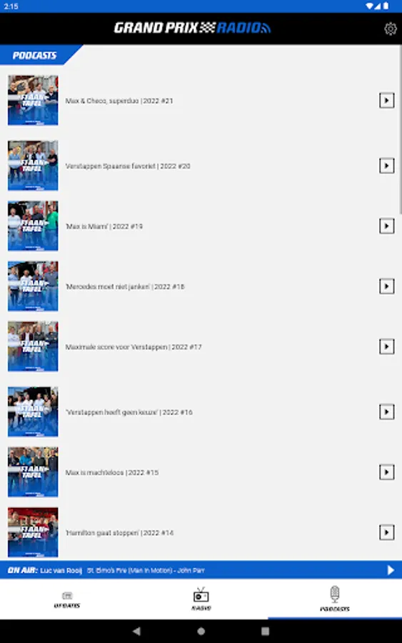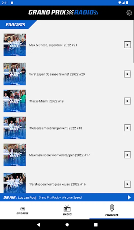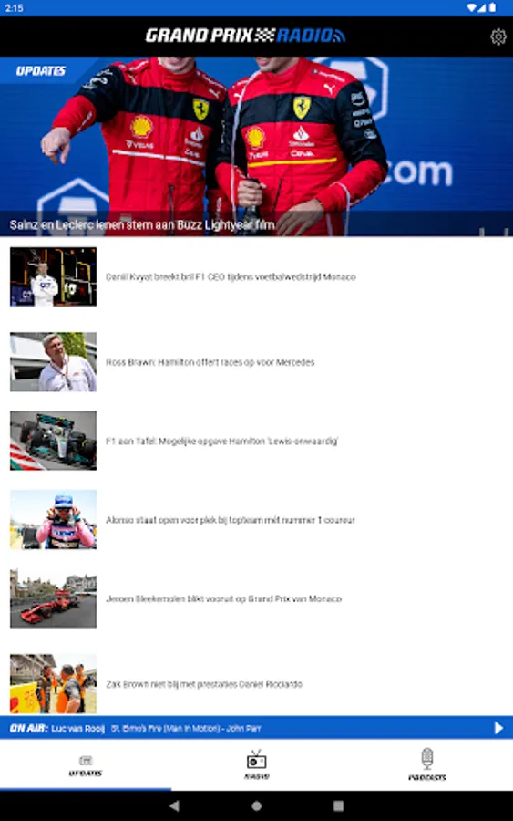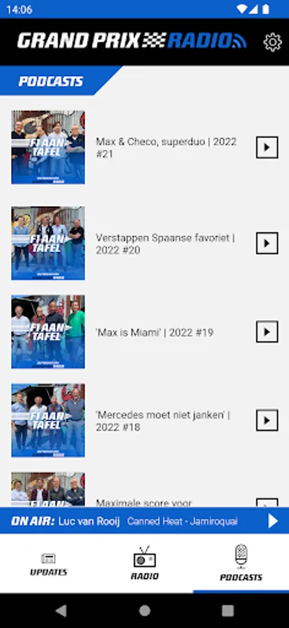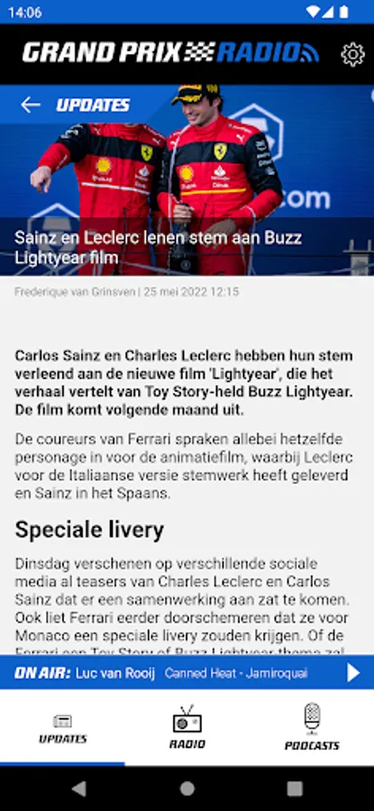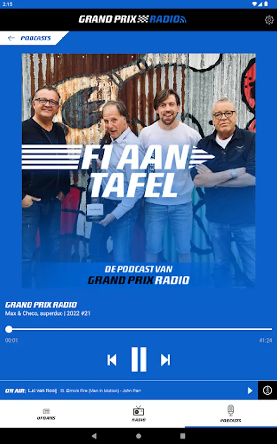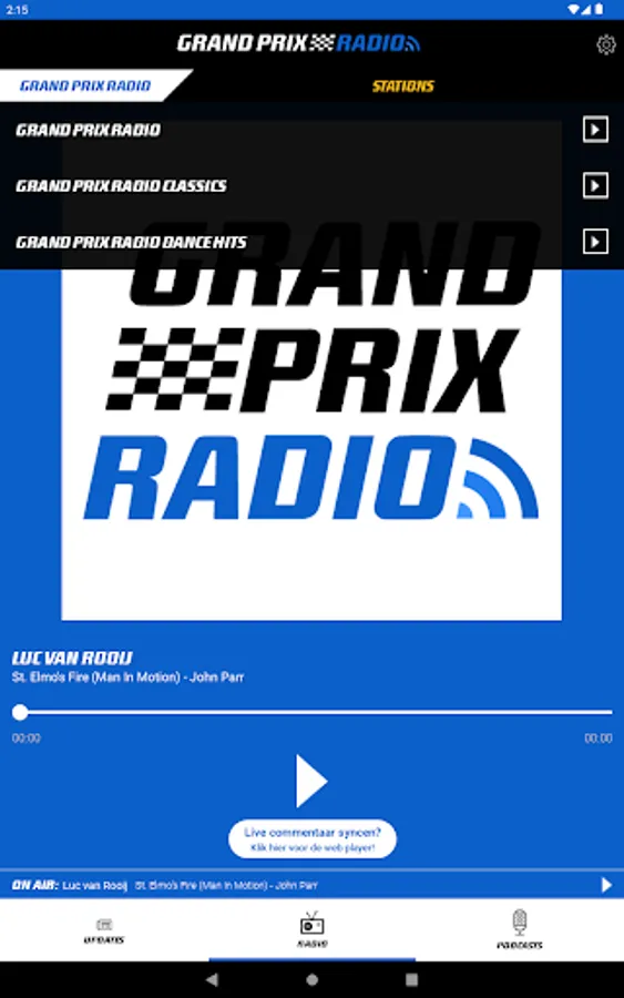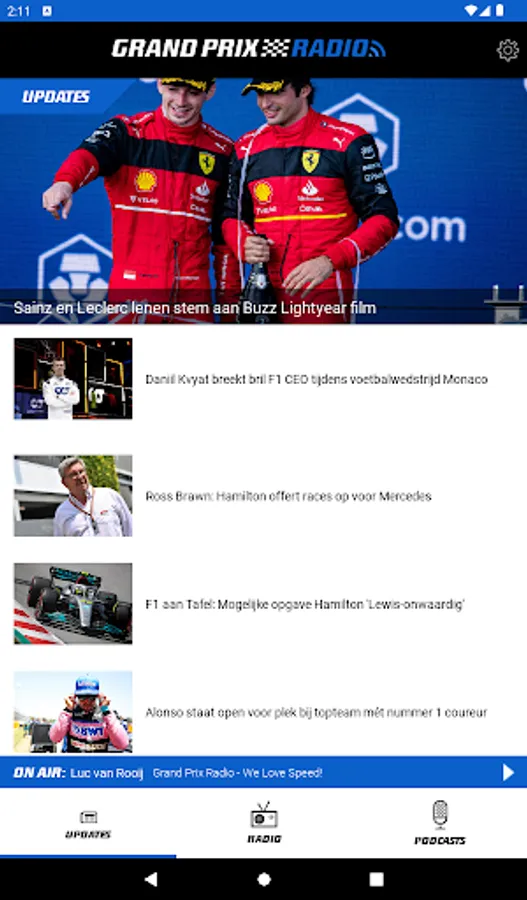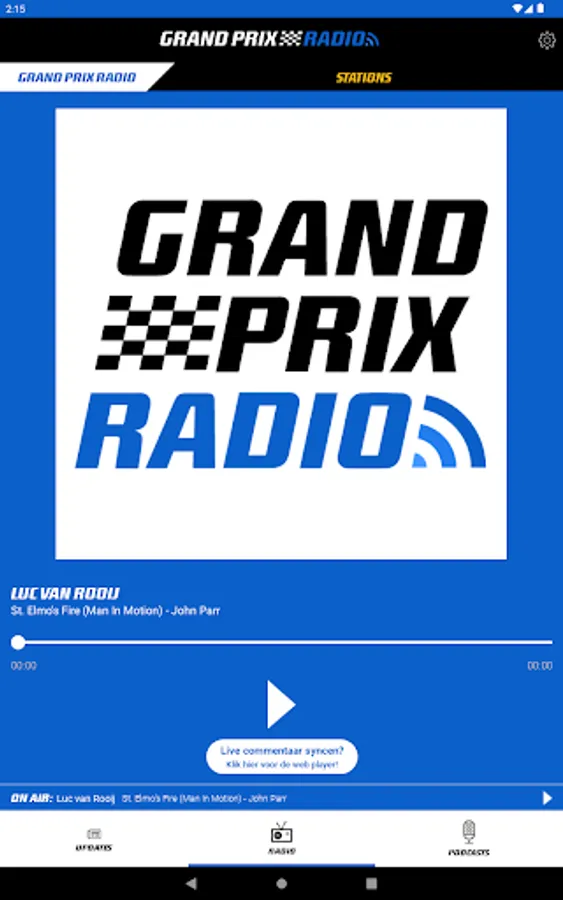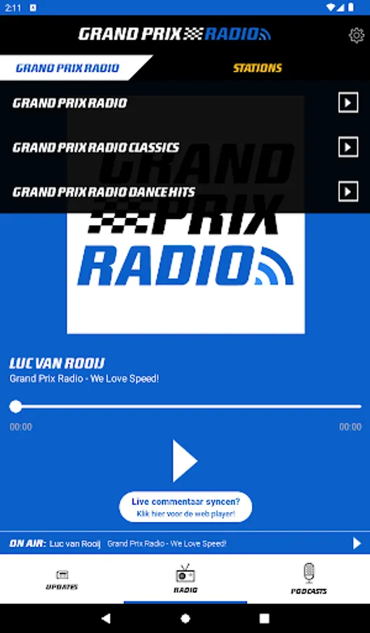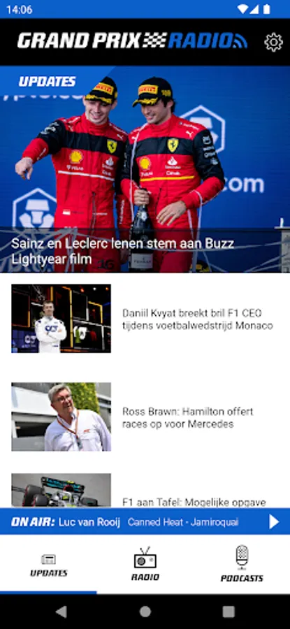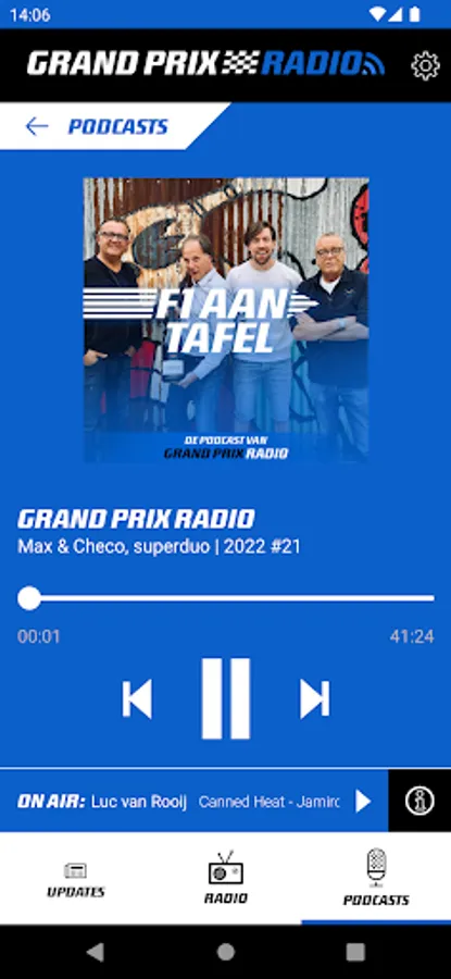 Grand Prix Radio brings you the very latest news from the racing world 24 hours a day. Every half hour you can hear Formula 1 commentator Olav Mol and pit reporter Jack Plooij from race circuits all over the world, with the best danceable hits & classics in between.