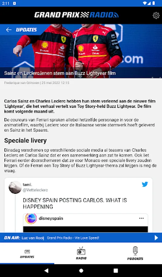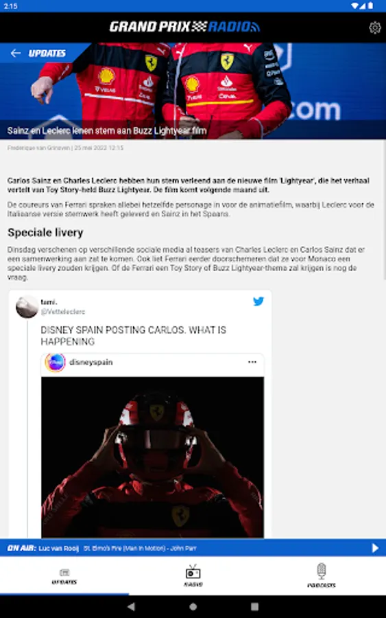 In the app you can also read and listen everything about Formula 1 and MotoGP.
