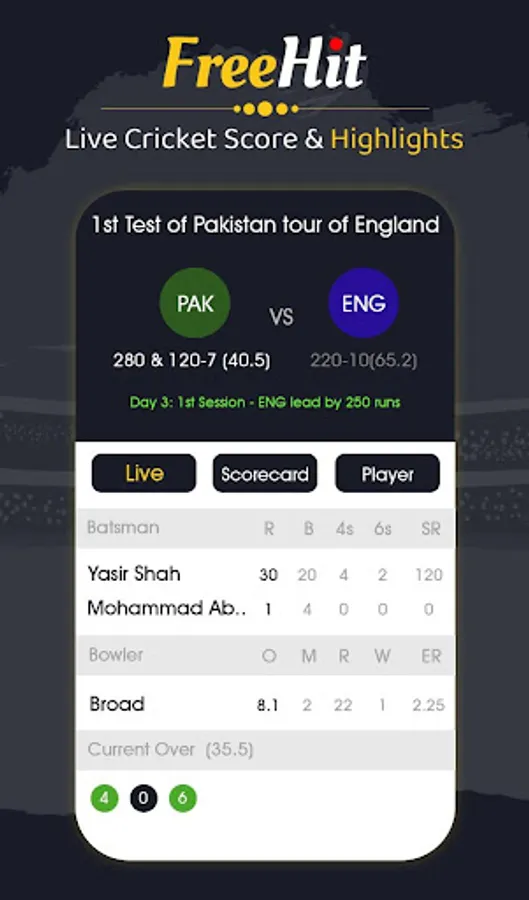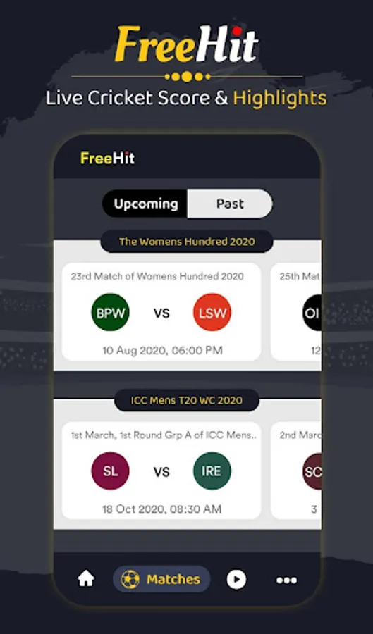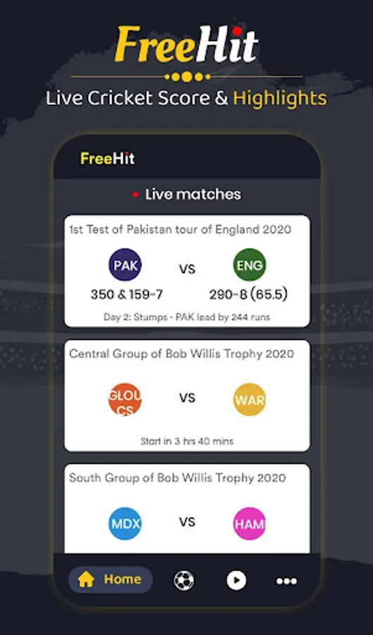 Welcome to the Free Hit-Fast live line app. This app is free of adverts, bringing you LIVE action, reaction and exclusive coverage of all format ICC & BCCI Men, Women Cricket match.