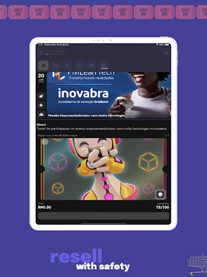 Our ecosystem guarantee trustability. No more ticket fraud at events.