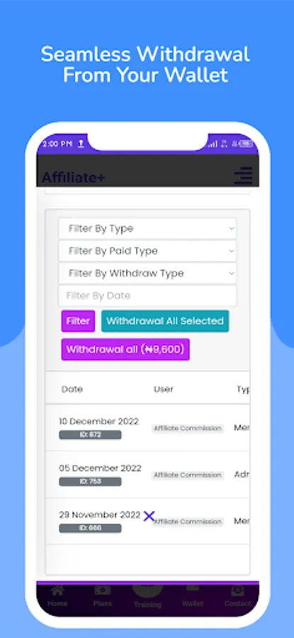 As a free Marketer, depending on your plan, 1% of ₦200,000 which is ₦2,000 will be credited into your Affiliate+ wallet. Once credited, you can't withdraw it immediately because it's not up to ₦5,000, if you purchase higher plan like Basic Marketer or any higher plan, your percentage will increase, for Pro Marketers, you will receive 10% of ₦200,000 which is ₦10,000, since it's above ₦5,000, you can withdraw into your Real bank account.
