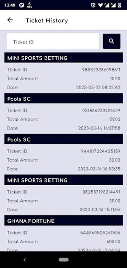 The app allows agents and punters of fixed odds soccer pools, lotto and lotteries to access to their operators games, promoters fixtures, daily or weekly, enhancing their sales with instant submitting and printing of tickets and prompt payment of winnings. Ensure the easy management of sales, tickets and reports.