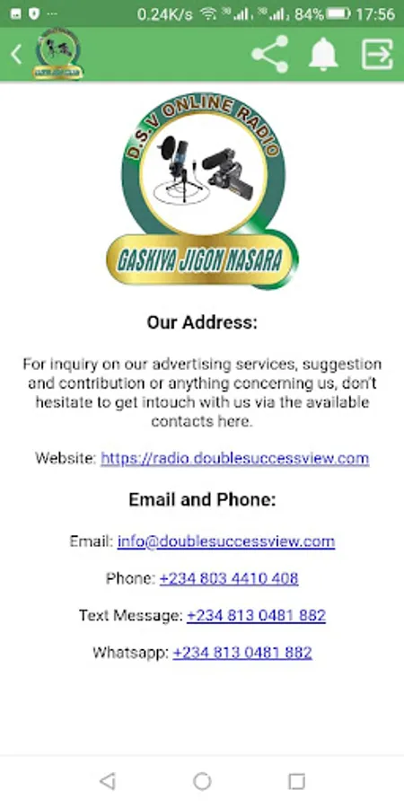 Double Success View Online Radio (DSV Radio International). is a newly established online radio station in northan part of Nigeria. It has a slogan as “Honesty is the key to success”. The radio has its own very talented broadcasting team who produces some of the best radio in their class.