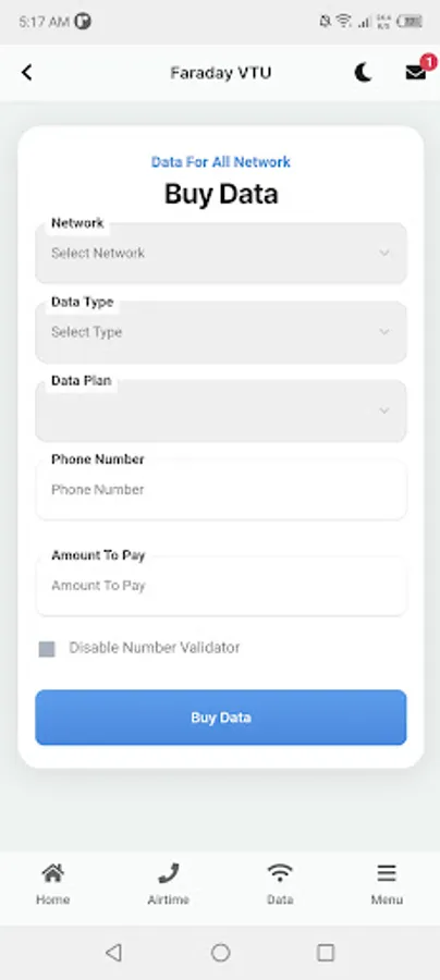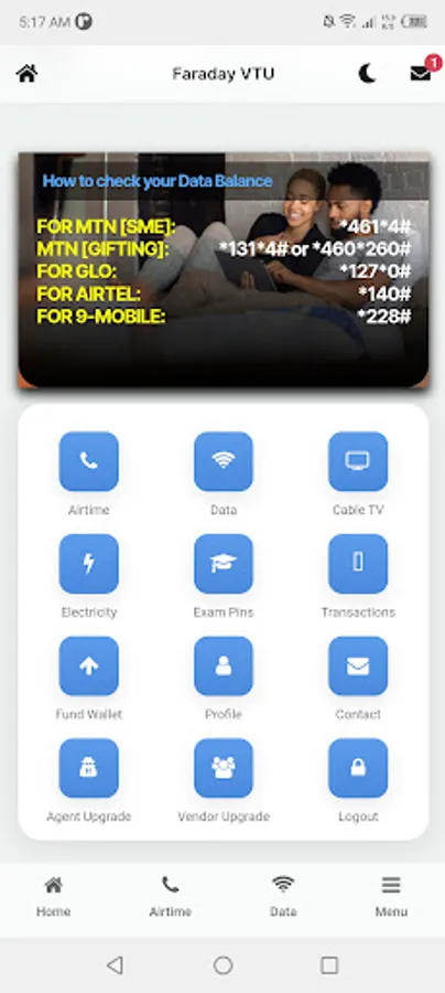 Faraday VTU is a web an application where users can purchase Mobile Data Bundles at cheaper rate, VTU Airtime, Pay Electricity Bills, Pay for TV Subscription. We have developed our application to accommodate user needs. Providing users of our platform the opportunity to save cost, make fast, secured, efficient and rewarding purchases and bill payments. Data can be rollover if you re-subscribe before expiry date of current plan.