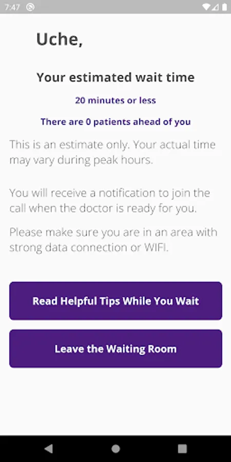Once you have set up an account on the app, you can request to speak with a doctor by clicking on the "I need to visit a Doctor" button. Your request will be reviewed by one of our doctors who will respond in minutes.