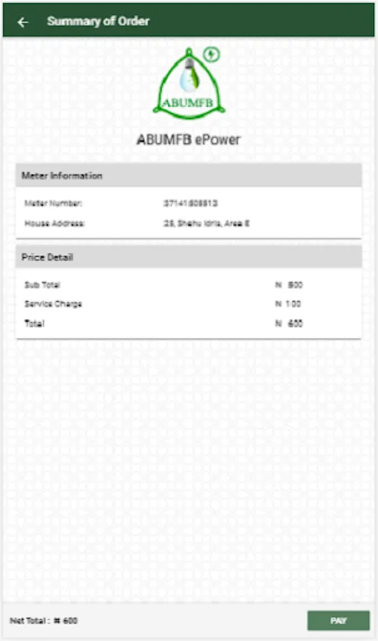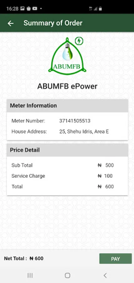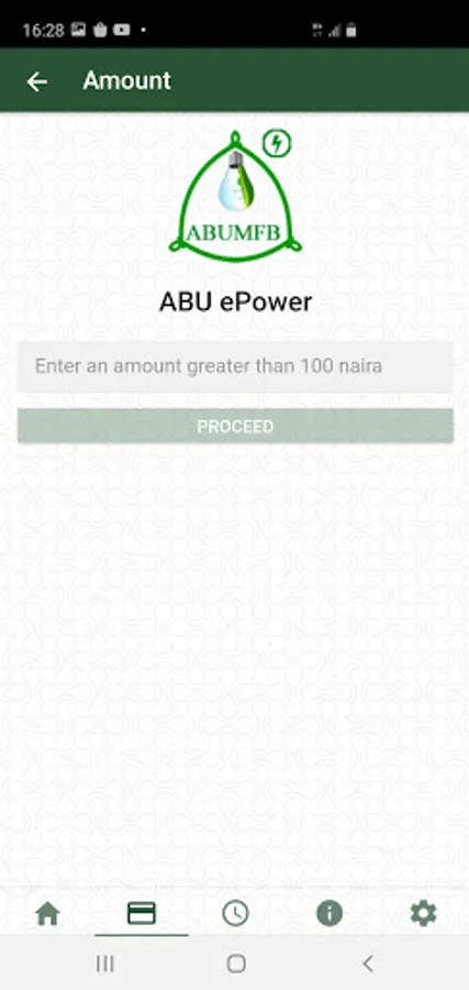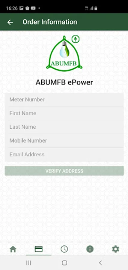 ABUMFB ePower is a mobile application developed for the staff of Ahmadu Bello University, Zaria Nigeria who reside in the university's staff quarters, as well as business owners who operate within any of the university's campuses and utilize power provided by university. The App is to be used by the aforementioned categories of people to purchase energy units for their meters.