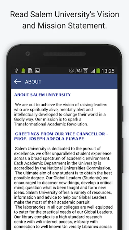 Salem University is dedicated to the pursuit of excellence, we offer unparalleled student experience across a broad spectrum of academic environment. Each Academic Department in the University is accredited by the National Universities Commission.