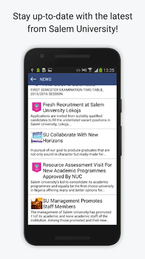 The Salem University Android application is an initiative to improve the mobile experience of students, faculty, staff, visitors, and neighbors who interact with Salem University's campus and community. We will continue to develop, expand and improve this application. We welcome your ideas and feedback.
