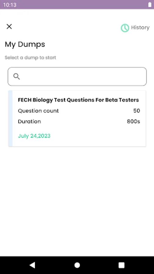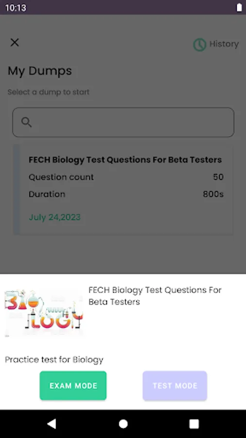 Exam history is available.