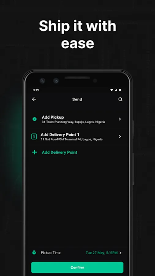 Send parcels with ease. Just select a pickup location and a dropoff location. An estimate will be provided to you instantly.