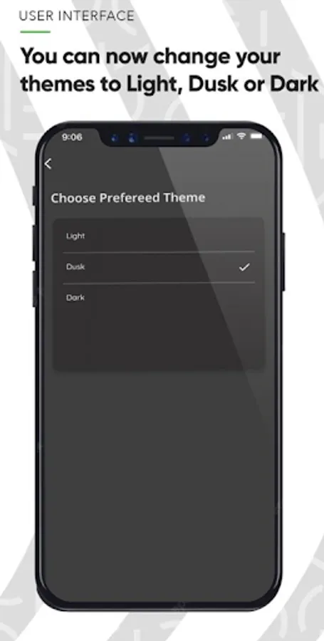 User Interface User experience on applications is key for ease of use and user satisfaction. Multi-Theme (Light, Dusk and Dark) has been introduced; You can now change your themes to Light, Dusk or Dark.