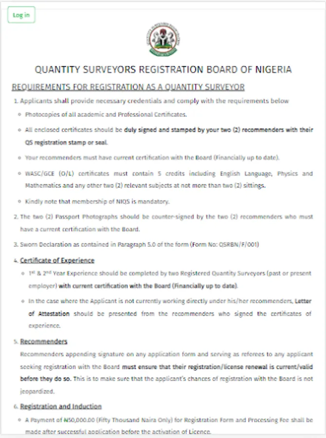 Quantity Surveyors Registration Board of Nigeria helps you to manage your practice license and credentials.