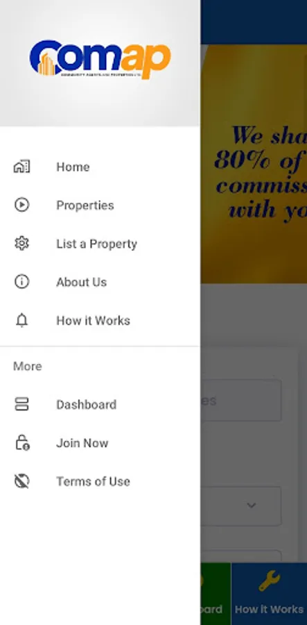 COMAP is a trade name for Community Agents and Properties Ltd. It embodies a community of agents, realtors, land and property owners who come together to enhance productivity, efficiency and earnings in real estate investment.