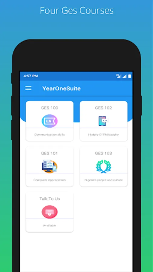 YearOneSuite is an app with four fundamental and general courses offered by the university of port harcourt, the app let's year one students practice and study for their exams, app saves their score so they can keep track of their progress and improve as well. YearOneSuite was developed by team hybrid with the aim to help more year one students succeed in the courses displayed on the app, thus reducing the volume of failure in the courses.