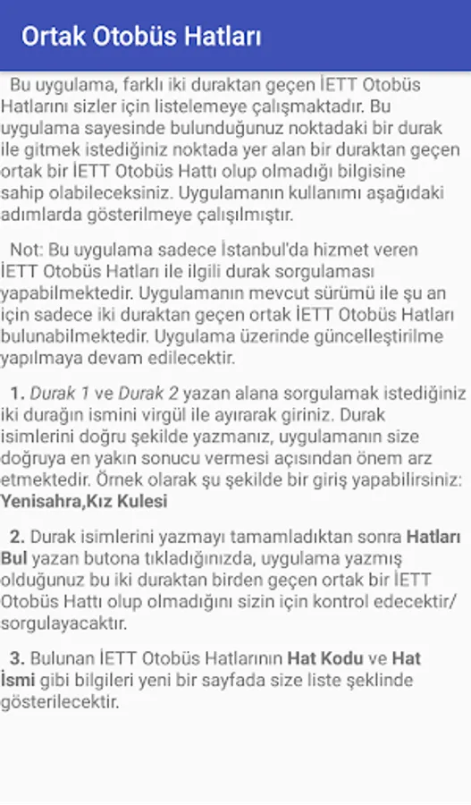 This application is different from the last two stops IETT Bus Lines to list their works for you. said a joint IETT from a station located at the point where you want to go with a stop at the point where you can thanks to this application you will have knowledge of whether the bus line.