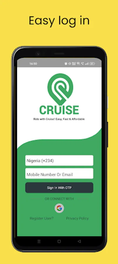 Cruise is a App based taxi booking App. The fast, affordable way to book a ride to any location within Nigeria. Riding with Cruise is easy, convenient and fast. Your experience is important to us that's why we never compromise on our standards. Safety regulations are particularly emphasized to ensure peace of mind.