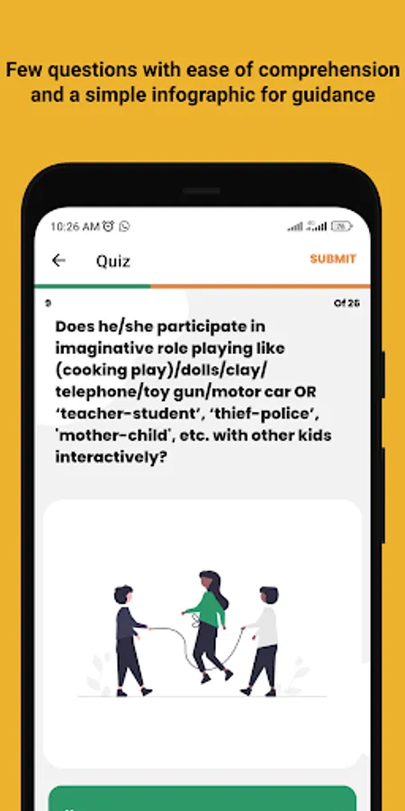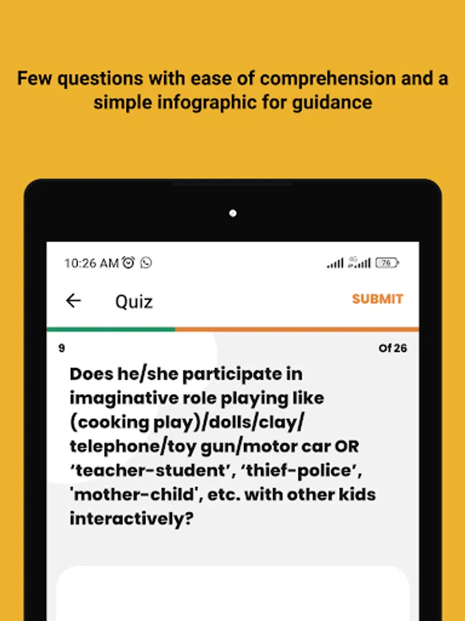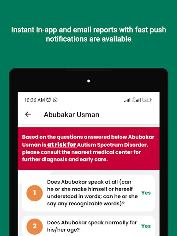 This application is only intended for research purposes and should not be used for commercial purposes. With the help of this app, parents, caregivers, and academic researchers will be able to access autism spectrum disorder (ASD) tests. It is imperative to note that these tests are not diagnostic tools. Rather, they are behavioral tests designed to identify autistic traits.