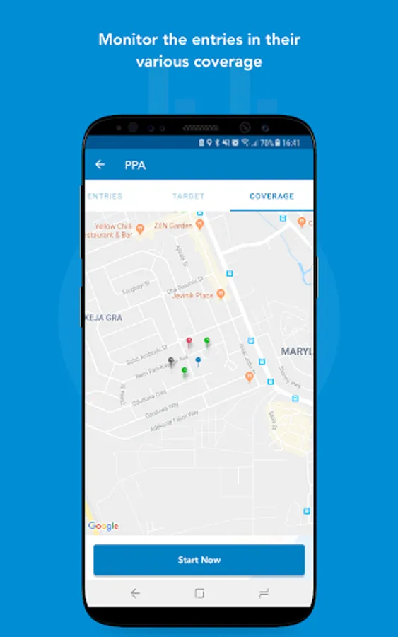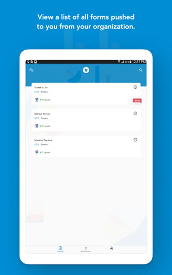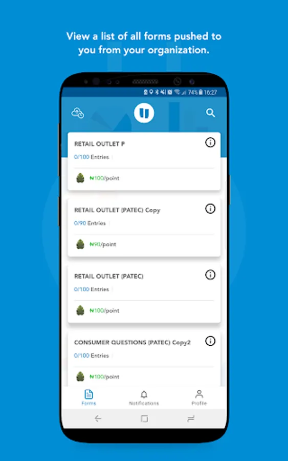 The mobile app enables agents collect data based on form defined by the organisation and allows a field agent collect as many data entry points as possible or as defined by the organisation.
