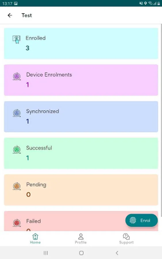 ● Offline-first enrolment saved securely locally and synchronized when an internet connection is found.
