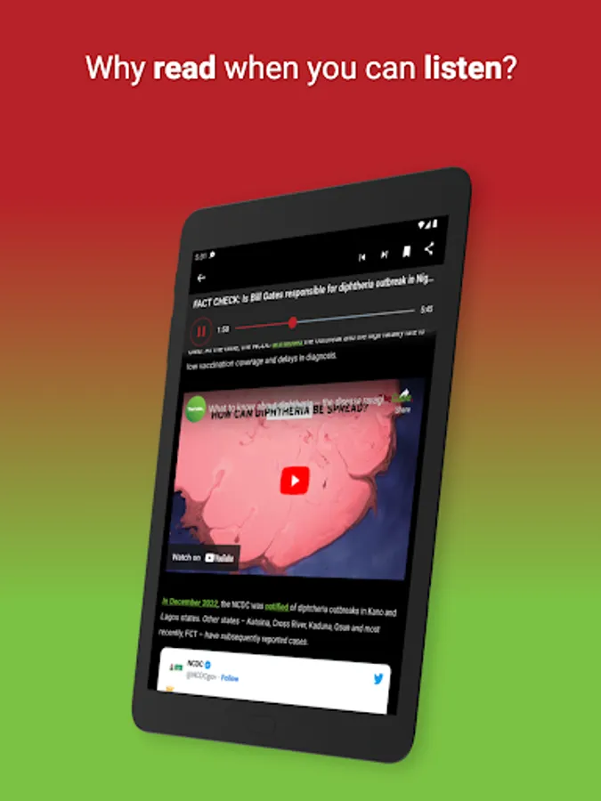 This app goes further by embedding special assistive features that make it easily accessible to persons with different forms of disability. It is Nigeria’s first Disability and Inclusion News App.