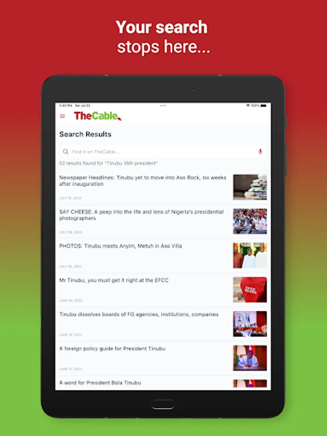 TheCable App is a window to our knowledge-driven journalism in pursuit of Nigeria’s progress. It grants you easy access to all our breaking stories, fact-checks, investigations, sports, and Lifestyle content around and outside the country.
