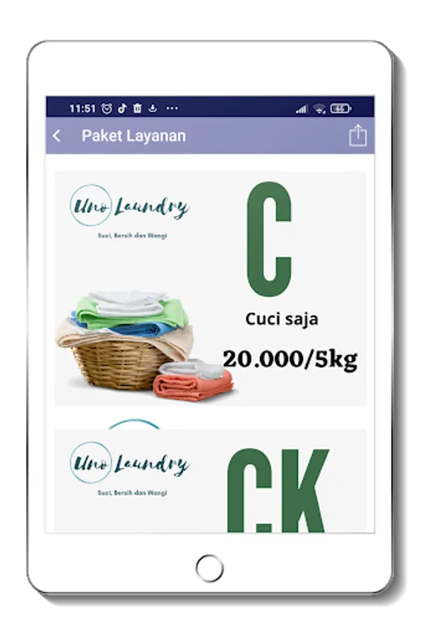 Business in the field of laundry with express services, serving laundry units and kilograms with various packages of choice.