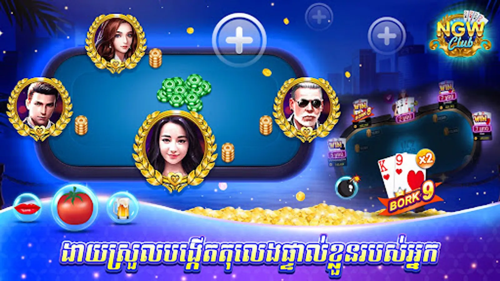 And emoji in NGW Club Tien Len Slots Kla Klouk Sab Sam Bork Kdeng. All the most prominent features are in