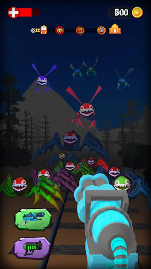 - Shoot monster spiders with weapons equipped at the rear of the train