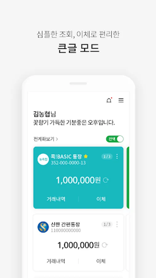 - You can view and transfer not only Nonghyup accounts but also other bank accounts.