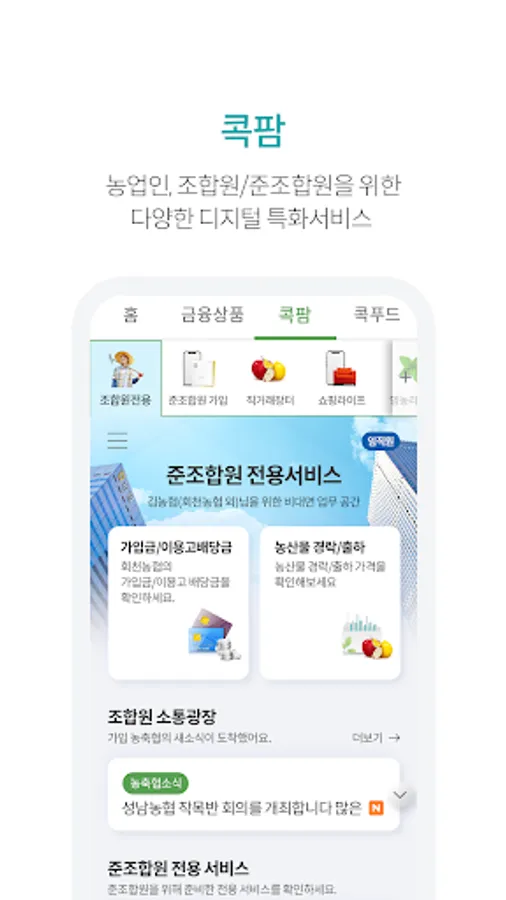 ■ Cock Shopping: This is a digital shopping channel for the Nonghyup, where you can easily purchase fresh agricultural and livestock products, home appliances, and household items from the Nonghyup.