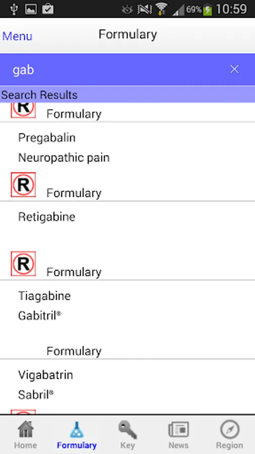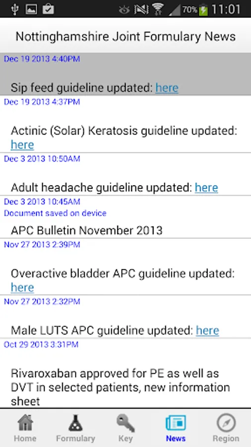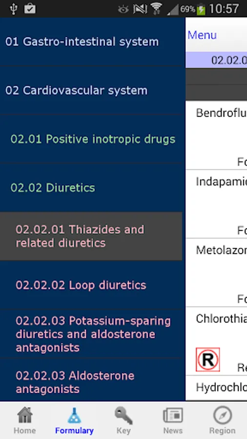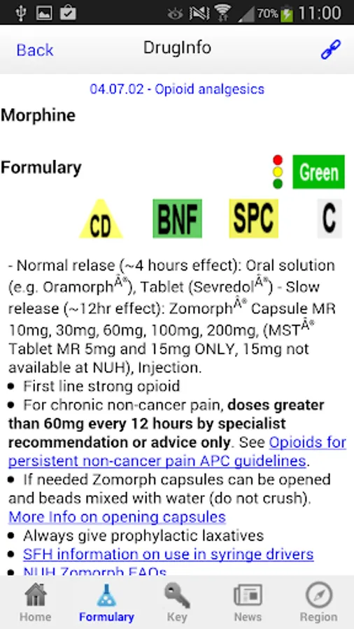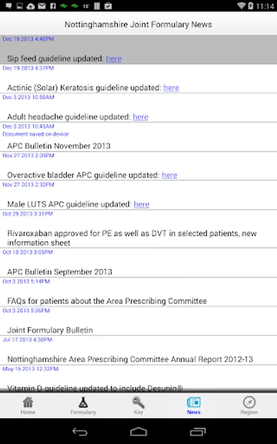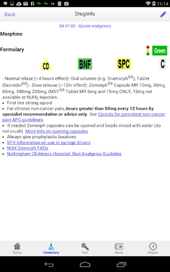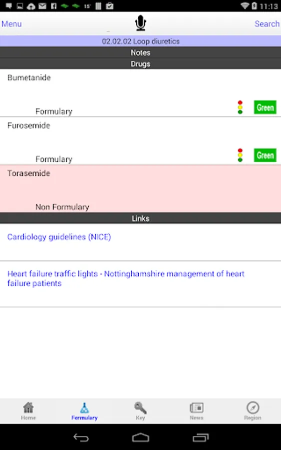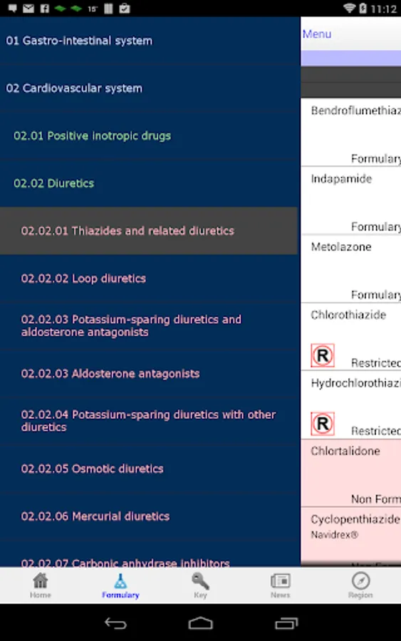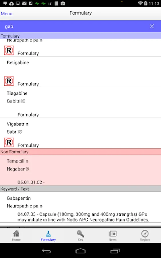 Once synchronised you have access to all your Formulary information, your Key and any News items. Select any of the Tabs to access the correct part of the App.